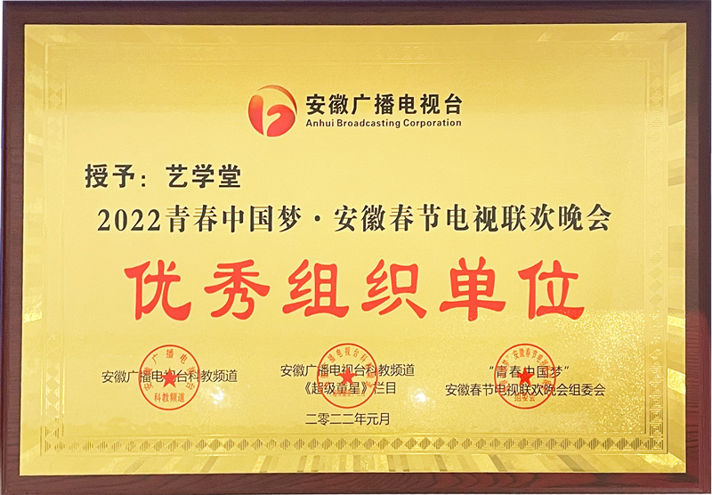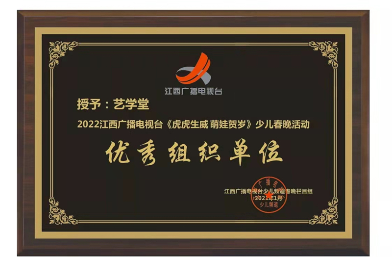 陽春三月天,喜報接連至。近日,合肥藝學堂、南昌藝學堂分別在2022安徽少兒春晚電視聯歡晚會《青春中國夢》、2022江西廣播電視臺《虎虎生威 萌娃賀歲》少兒春晚活動中喜獲“優秀組織單位”稱號!