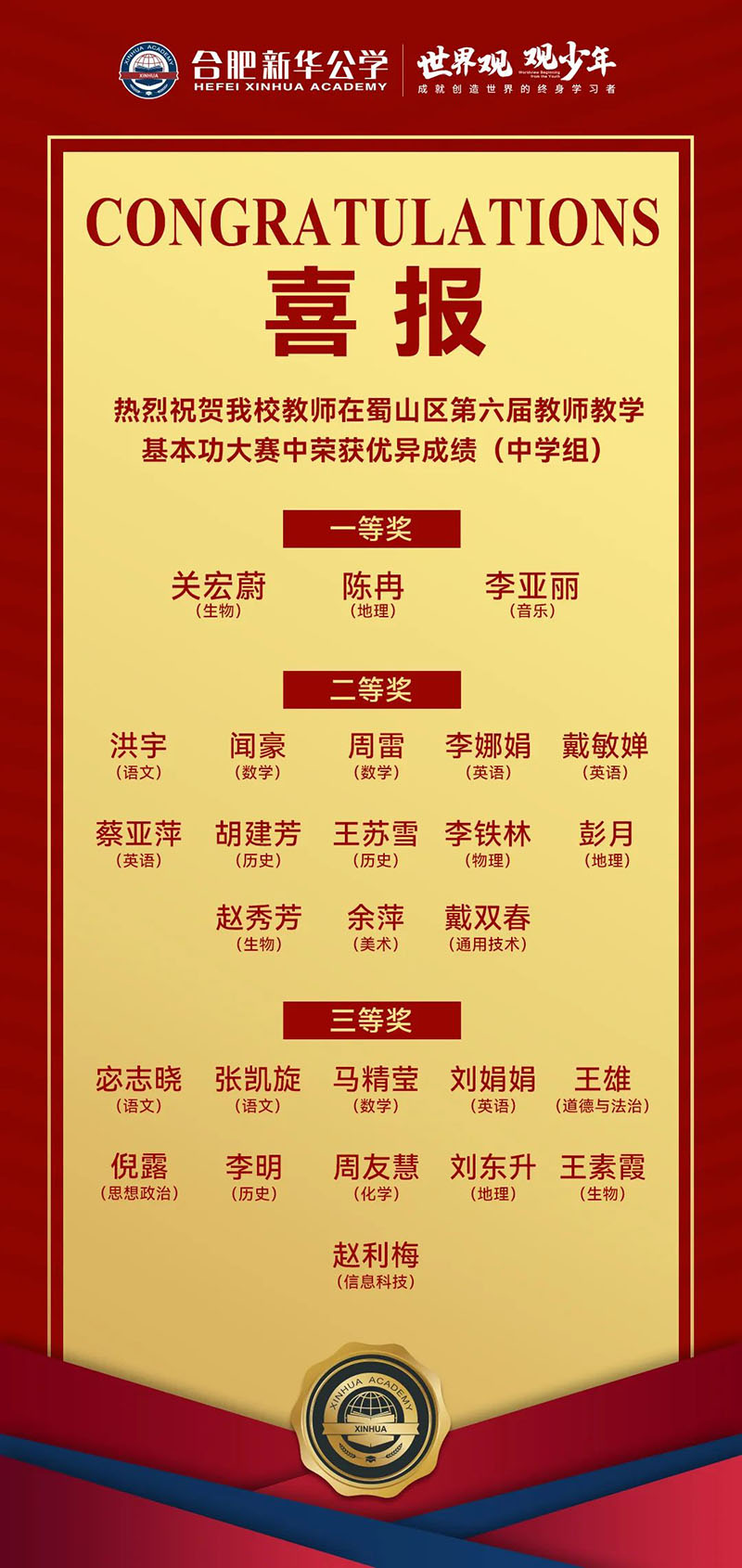 歲陰窮暮紀(jì),獻(xiàn)禮啟新芳。冬盡今宵促,年開明日長(zhǎng)。在2024年的開年之際,蜀山區(qū)第六屆教師教學(xué)基本功大賽獲獎(jiǎng)名單正式公示。