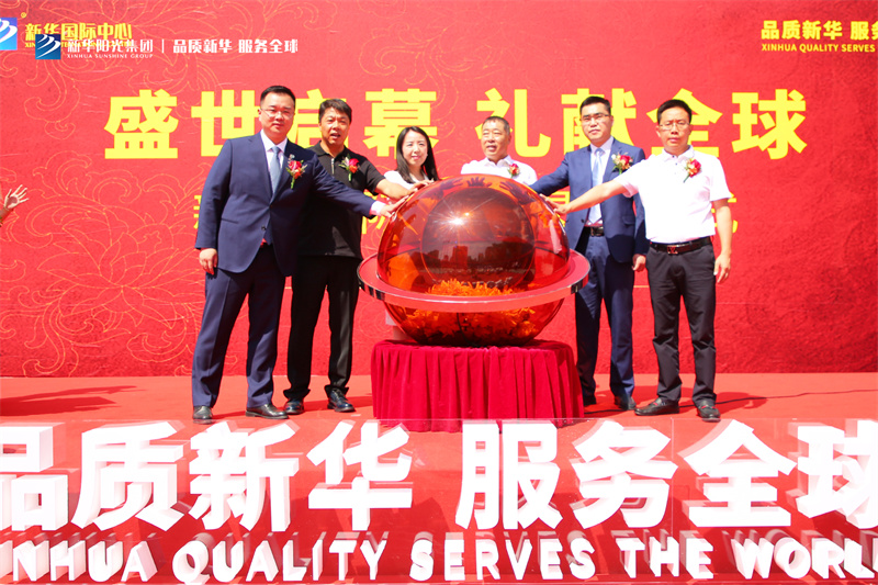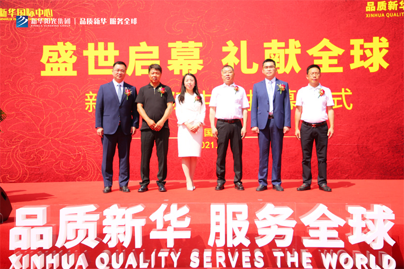 盛世啟幕,禮獻全球。百花齊放,掌聲雷動,與會的各位嘉賓領導紛紛登臺,共同為新華國際中心開園儀式揭幕并給予美好的祝愿。