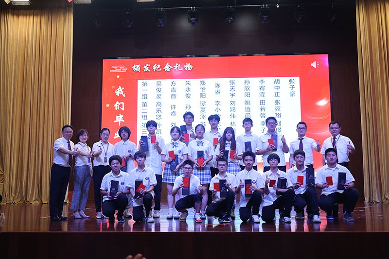 秦校長為畢業生頒發畢業證,屏幕上出現的每一個名字都閃爍著學生在新華的點滴,要把記憶珍藏好啊