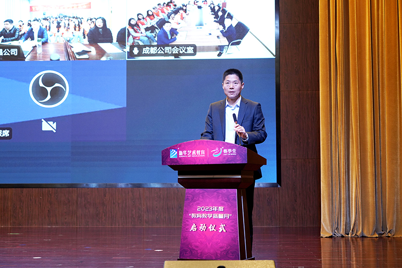 為進(jìn)一步提升各項(xiàng)目教育教學(xué)質(zhì)量,推動(dòng)教學(xué)理念、方法的改革創(chuàng)新。4月6日,藝學(xué)堂“2023年教育教學(xué)質(zhì)量月”正式啟動(dòng)。集團(tuán)分管領(lǐng)導(dǎo)董總、藝學(xué)堂領(lǐng)導(dǎo)和合肥區(qū)域全體教師到場參會(huì),鄭州、南昌、成都區(qū)域領(lǐng)導(dǎo)和教師線上參會(huì)。