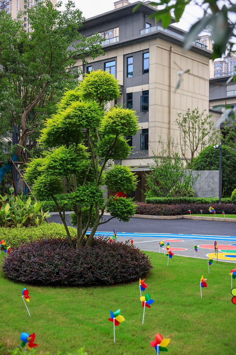 長青喬木、應時花草一起組成,春花、夏蔭、秋聲、冬藏的畫境開啟歸家漫時光,漫步其中,移步異景如畫卷層層鋪展。