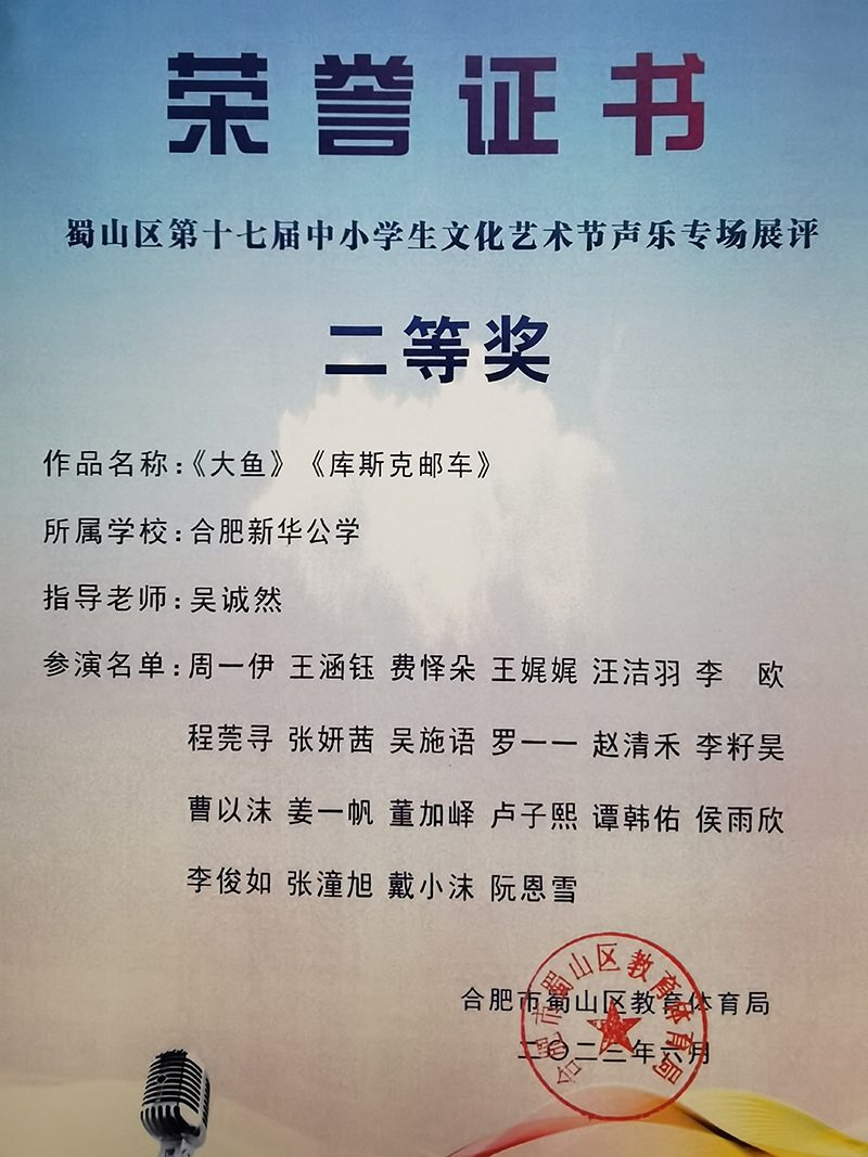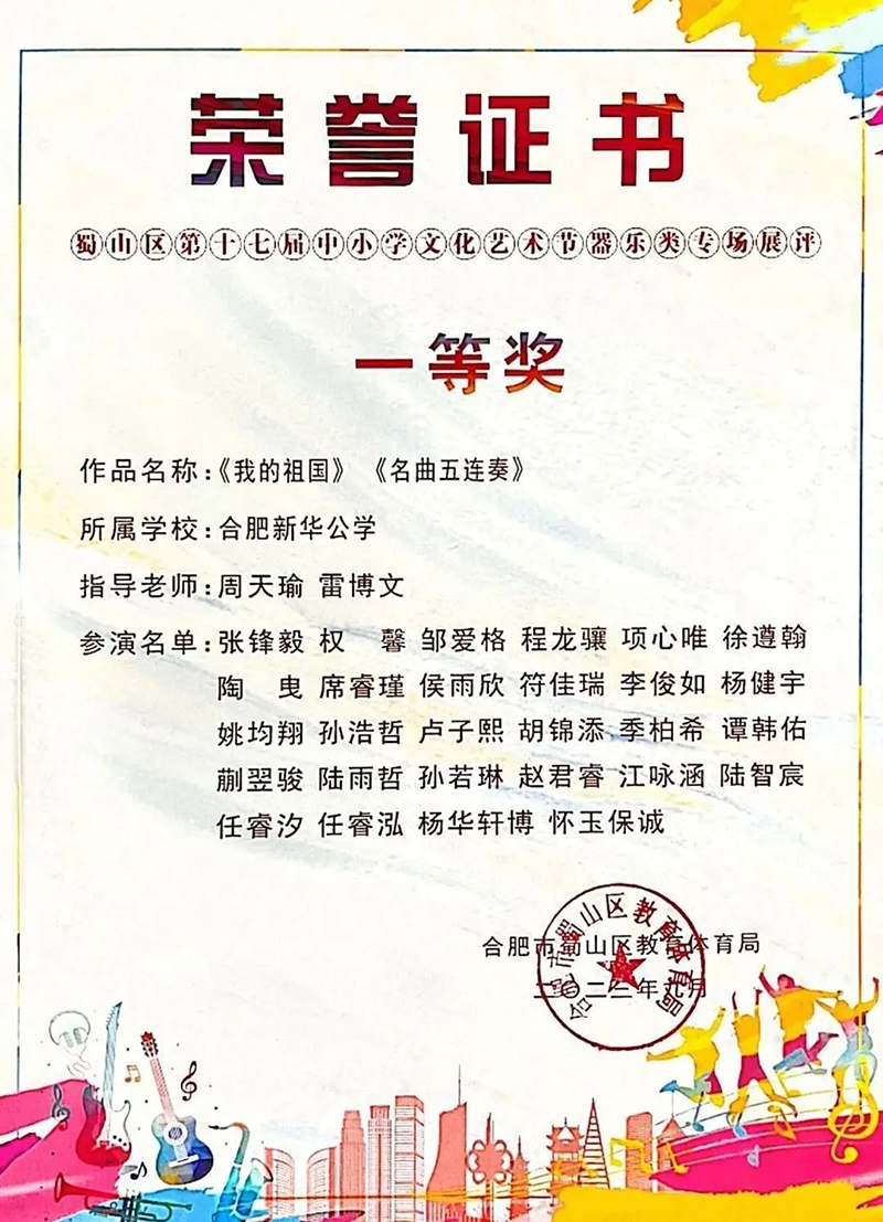 春華秋實(shí),不負(fù)耕耘。在剛剛結(jié)束的合肥市蜀山區(qū)第十七屆中小學(xué)文化藝術(shù)節(jié)中,新華公學(xué)兩支參賽隊(duì)伍都表現(xiàn)出色,分別獲得了獲器樂(lè)合奏一等獎(jiǎng)和聲樂(lè)專(zhuān)場(chǎng)展評(píng)二等獎(jiǎng)的好成績(jī)!其中,由28名學(xué)生代表組成的青少年交響樂(lè)團(tuán)成功晉級(jí)市級(jí)比賽,并精心錄制了參賽視頻。