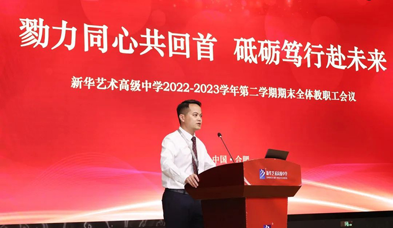 盛情夏季,桃李芬芳;潛心育人,賡續(xù)前行。為發(fā)揮黨建的引領(lǐng)作用,推動學(xué)校工作高質(zhì)量發(fā)展,凝聚新征程再出發(fā)的奮進力量,7月11日下午,新華藝術(shù)高級中學(xué)全體教職員工歡聚一堂,隆重召開以“勠力同心共回首,砥礪篤行赴未來”為主題的2022-2023學(xué)年第二學(xué)期期末全體教職工會議。新華藝術(shù)高級中學(xué)校長邵忠德,副校長蔡賢滿、李愛國、吳東、方明生等領(lǐng)導(dǎo)及全體教職員工參加,大會由黨政辦公室主任夏娟娟主持。