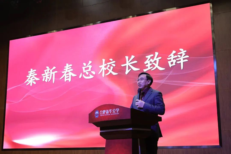 新華公學秦新春總校長上臺致辭!秦校長殷切叮囑在場的所有同學,要早立志,立大志。立志后更應加強個人修養,不斷提升自我學識和人格境界,如此方能實現志。縱使“求志”道路上遭遇挫折,也應不失本心,自在坦蕩,在日常生活中感受詩意,快樂進取。