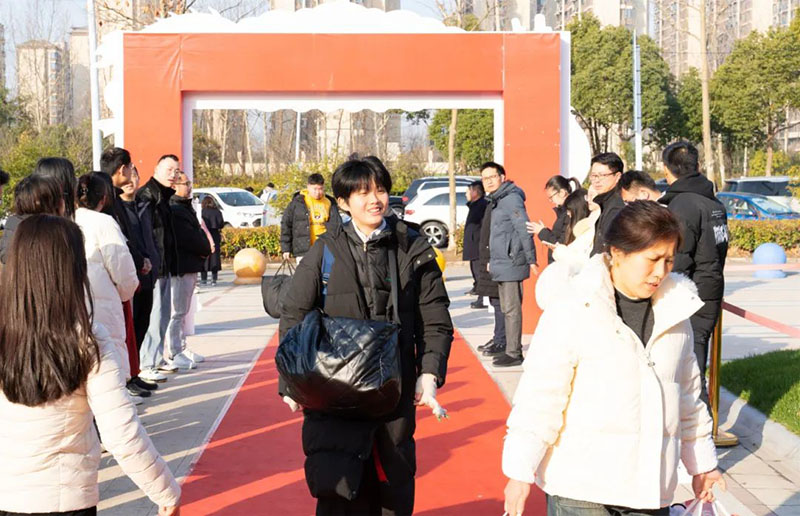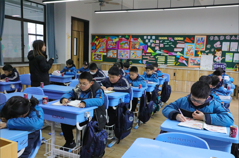 校長和老師們早早就等候孩子們歸來,送上新年的祝福與擁抱。伴隨著一聲聲充滿濃濃情意的“新年好”、“新年快樂”,同學們快樂地踏入校園。