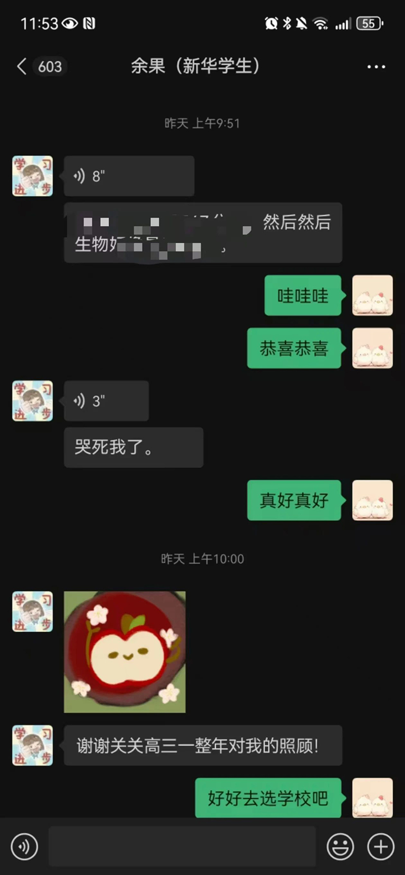 遇良師,終生幸焉。每當(dāng)我擁有學(xué)習(xí)上的疑問(wèn)時(shí),回顧望去,總能找到老師們們的身影;每當(dāng)青春的疼痛來(lái)臨,我不用去尋找,因?yàn)樗麄兛隙▓?jiān)定的在我身后。學(xué)生朽木,卻遇良師。感謝所遇的新華每一位任課老師,班老師、兩位董老師、商老師、楊老師、關(guān)老師、蘇老師、王老師、代老師、胡老師、張老師,我可能只是你們所遇莘莘學(xué)子中的一位,但你們永遠(yuǎn)是我的人生不可或缺的一絲溫暖。