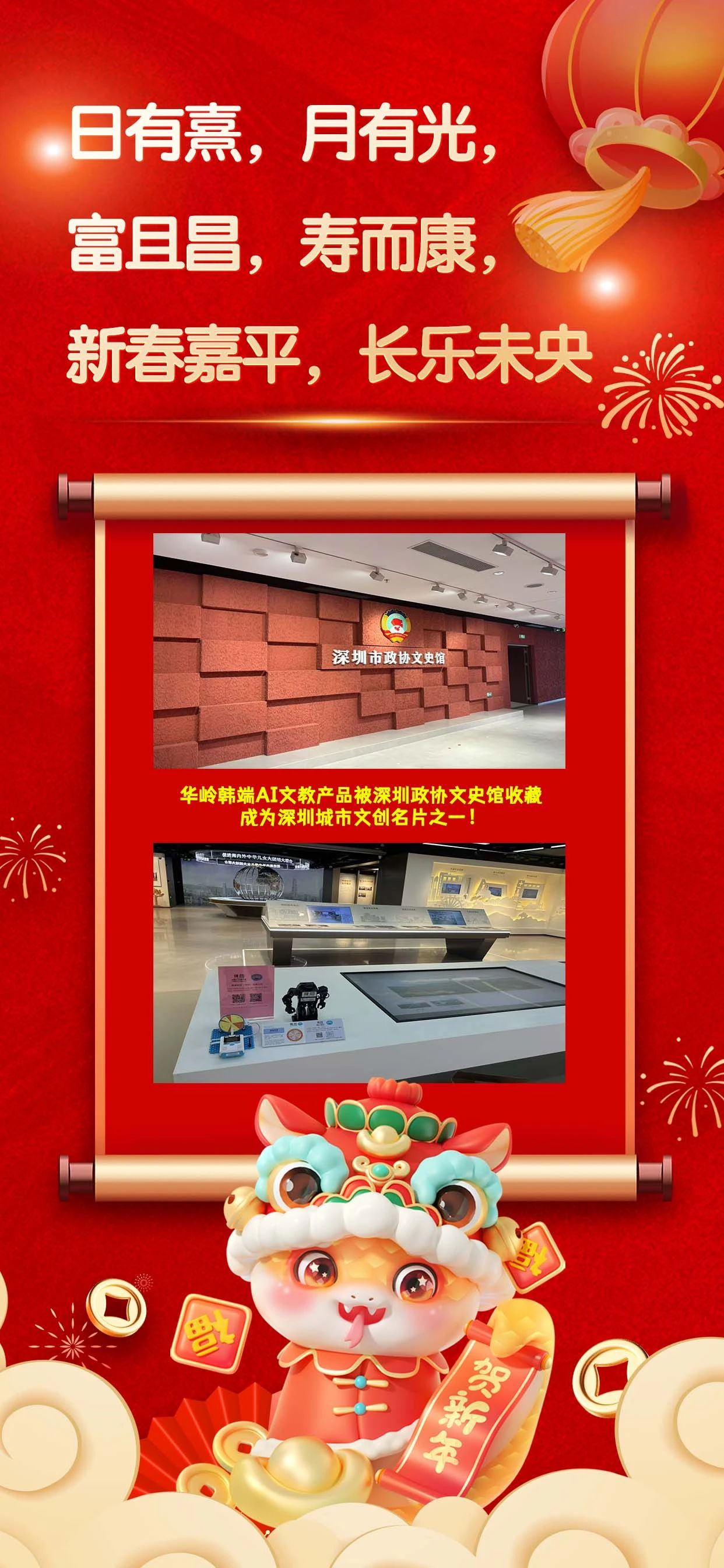 恭祝蛇年新春嘉平,長樂未央 | 華嶺韓端AI科創文教產品被深圳政協文史館收藏