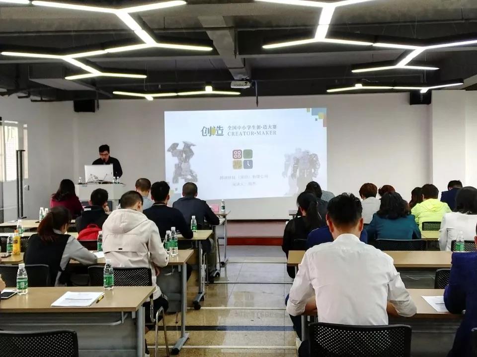 韓端科技胡杰老師介紹了全國中小學(xué)創(chuàng)·造大賽AI地球分賽項(xiàng)的相關(guān)情況。全國中小學(xué)創(chuàng)·造大賽是教育部認(rèn)可的2019年度面向中小學(xué)生開展的全國性競賽活動,被科技部、中宣部、中國科協(xié)列為全國科技活動周常年舉辦的重大科普示范活動,并獲得了多個部門的大力支持。