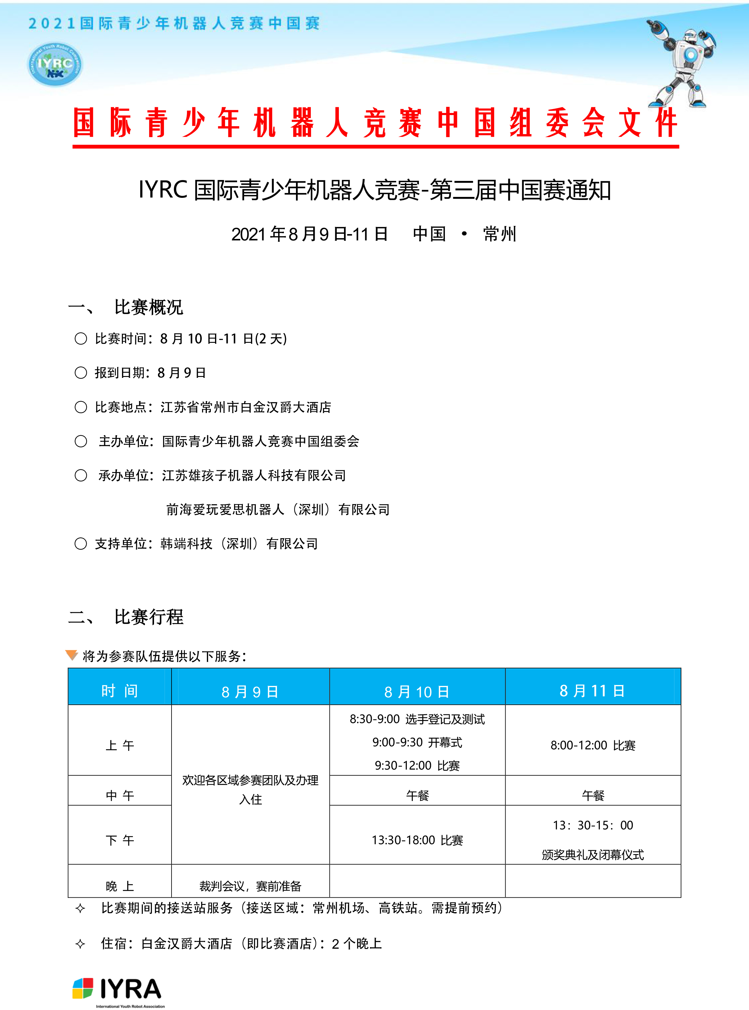 IYRC 國際青少年機(jī)器人競(jìng)賽-第三屆中國賽通知