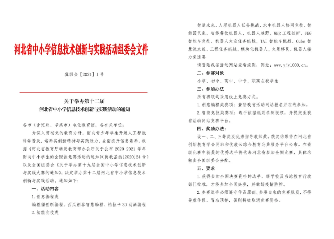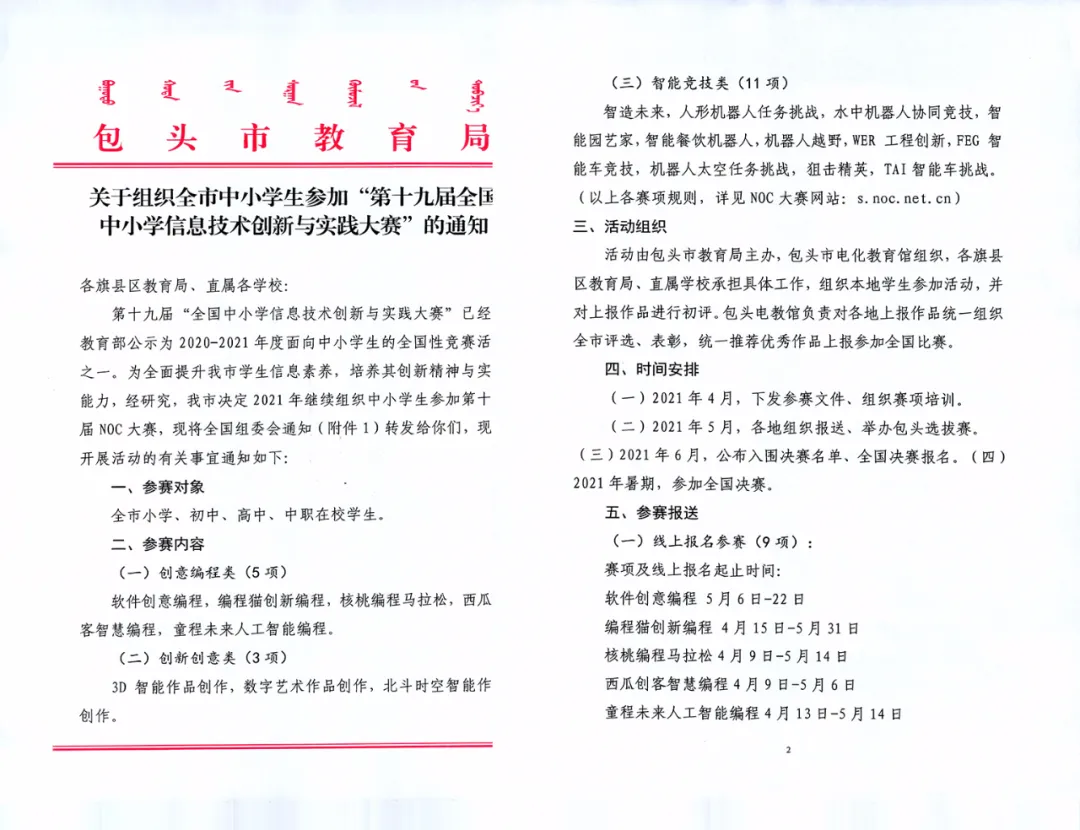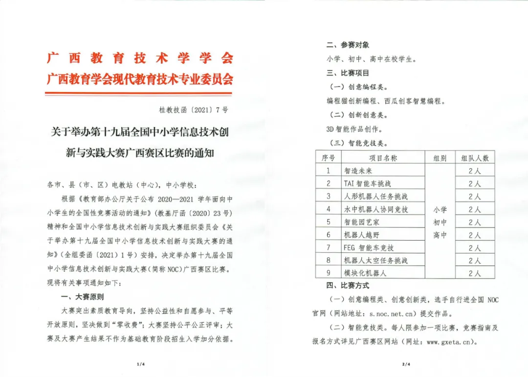 4月6日,NOC全國組委會正式發(fā)布《關(guān)于舉辦第十九屆全國中小學信息技術(shù)創(chuàng)新與實踐大賽的通知》(全組委函【2021】1號文),韓端為NOC機器人越野賽承辦單位!歡迎踴躍報名參加教育部白名單賽事!