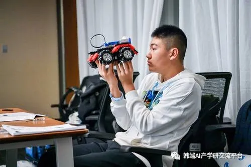 韓端騰訊優(yōu)圖UI無人駕駛智能車科學(xué)夏令營以“優(yōu)I無人駕駛智能小車”為教具。