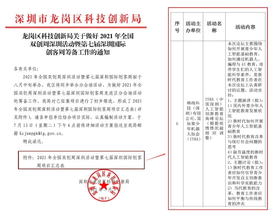 韓端科創科普項目入圍2021年全國雙創周深圳活動暨第七屆深圳國際創客周項目!