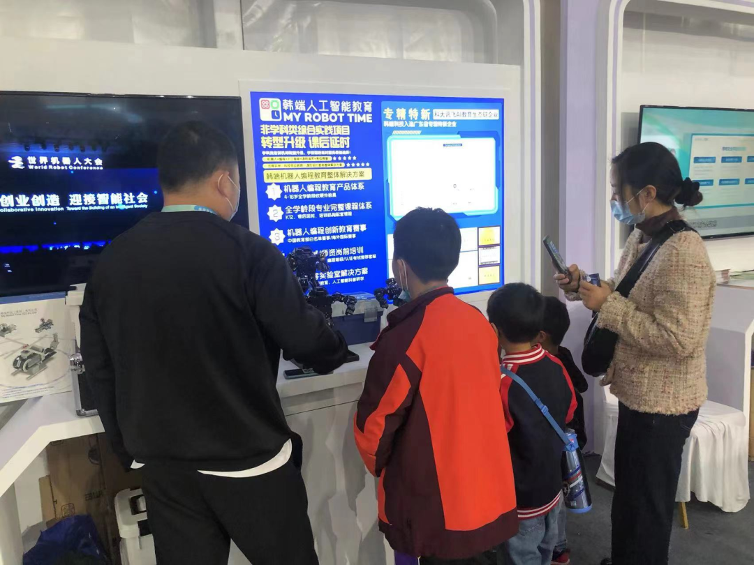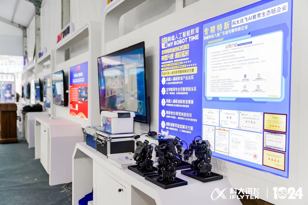 與此同時,韓端科技作為科大訊飛核心生態鏈企業之一受邀參加了本屆1024的線下科博展。韓端科技在本次1024展覽中重點展示了AI在機器人教育、數字化教學平臺等領域的創新應用成果,用AI開啟數字化新世界,展現科技創新教育的力量。