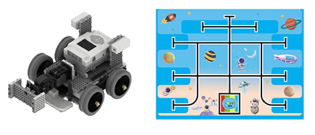以“流浪星球”為主題,機器人控制器使用ATMEGA2560系列/ATMENGA328P系列芯片,支持SCRATCH3.0編程,用戶將自己拼搭的機器人通過電腦編程實現“物資傳送、障礙清除、探測機起飛、礦物開采、啟動太陽能板、能源填充、能源發射、光學三原色”等任務。