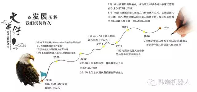 韓端科技(深圳)有限公司是是全球最早從事教育機器人事業(yè)的頂級企業(yè)之一。公司成立于2008年,由韓國、中國、香港三方友好合資經(jīng)營,業(yè)務涵蓋教育機器人的研發(fā)設計、生產(chǎn)銷售、品牌運營、教研教育、課件開發(fā)五大板塊。作為一家注冊在中國的高新技術企業(yè),公司擁有全球?qū)@野l(fā)明專利、實用新型、外觀專利、軟件著作權等知識產(chǎn)權幾百項。公司自成立以來,已持續(xù)在全球推出了HUNA MY ROBOT TIME(MRT)、KICKY、GOMA、BRAIN、CREATIONS、LAND、DINOSAURS、ROBOT HEROES、ROBOT FISH-MIRO、CORE等品牌。