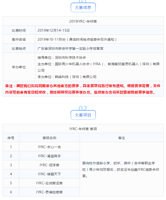 關(guān)于國際青少年機(jī)器人競賽“2019IYRC-年終賽”的參賽通知!